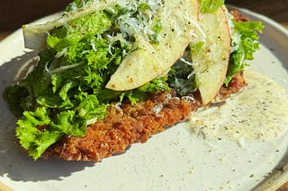 no. 169: pretzel chicken schnitzel with honey mustard apple-fennel slaw