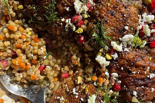 no. 166: za’atar chicken thighs with couscous, dates, and pistachios