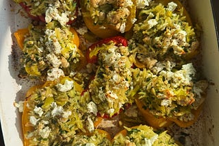 no. 172: greek chicken, feta, and orzo stuffed peppers